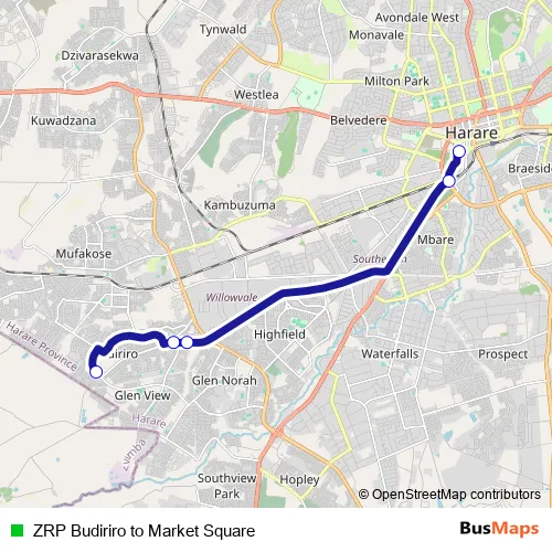 Additional information: ZRP Budiriro to Market Square has 5 stops and the total trip duration