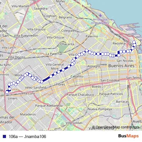 See why over 2 million users trust and consider busmaps.com as the best public transport website. busmaps gives you Buenos Aires Buses suggested routes, real-time bus tracker, line route maps in Buenos Aires, and helps to find the closest 106a bus stops near you. No internet available? Download an offline PDF map and bus schedule for the 106a bus to take on your trip.