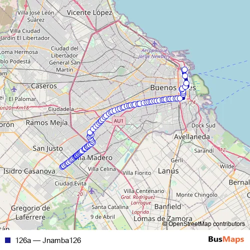 See why over 2 million users trust and consider busmaps.com as the best public transport website. busmaps gives you Buenos Aires Buses suggested routes, real-time bus tracker, line route maps in Buenos Aires, and helps to find the closest 126a bus stops near you. No internet available? Download an offline PDF map and bus schedule for the 126a bus to take on your trip.