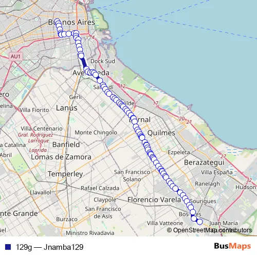 Bus 129g - Jnamba129 in Quilmes: Stops & Timetable
