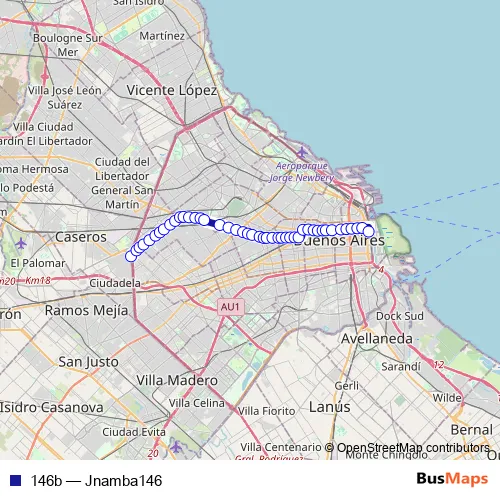 See why over 2 million users trust and consider busmaps.com as the best public transport website. busmaps gives you Buenos Aires Buses suggested routes, real-time bus tracker, line route maps in Buenos Aires, and helps to find the closest 146b bus stops near you. No internet available? Download an offline PDF map and bus schedule for the 146b bus to take on your trip.