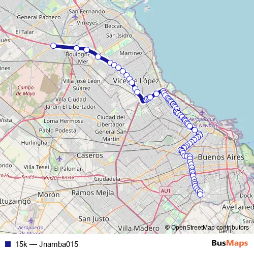 See why over 2 million users trust and consider busmaps.com as the best public transport website. busmaps gives you Buenos Aires Buses suggested routes, real-time bus tracker, line route maps in Buenos Aires, and helps to find the closest 15k bus stops near you. No internet available? Download an offline PDF map and bus schedule for the 15k bus to take on your trip.