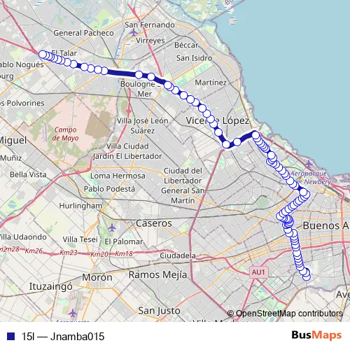See why over 2 million users trust and consider busmaps.com as the best public transport website. busmaps gives you Buenos Aires Buses suggested routes, real-time bus tracker, line route maps in Buenos Aires, and helps to find the closest 15l bus stops near you. No internet available? Download an offline PDF map and bus schedule for the 15l bus to take on your trip.