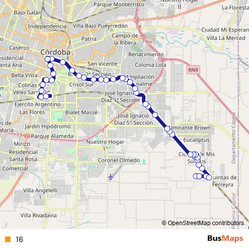 See why over 2 million users trust and consider busmaps.com as the best public transport website. busmaps gives you Cordoba Buses suggested routes, real-time bus tracker, line route maps in Cordoba, and helps to find the closest 16 bus stops near you. No internet available? Download an offline PDF map and bus schedule for the 16 bus to take on your trip.