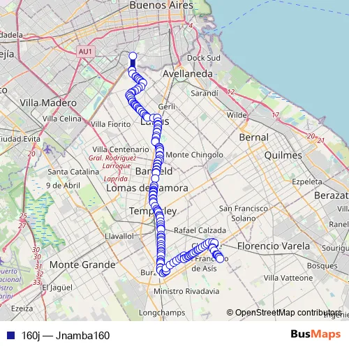 See why over 2 million users trust and consider busmaps.com as the best public transport website. busmaps gives you Lomas de Zamora Buses suggested routes, real-time bus tracker, line route maps in Lomas de Zamora, and helps to find the closest 160j bus stops near you. No internet available? Download an offline PDF map and bus schedule for the 160j bus to take on your trip.
