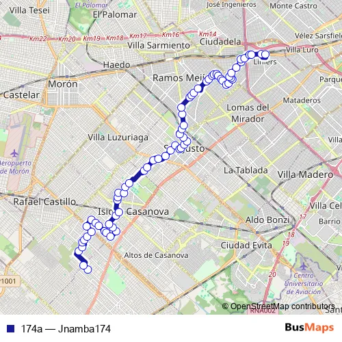 See why over 2 million users trust and consider busmaps.com as the best public transport website. busmaps gives you San Justo Buses suggested routes, real-time bus tracker, line route maps in San Justo, and helps to find the closest 174a bus stops near you. No internet available? Download an offline PDF map and bus schedule for the 174a bus to take on your trip.