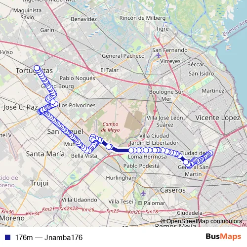See why over 2 million users trust and consider busmaps.com as the best public transport website. busmaps gives you Jose C. Paz Buses suggested routes, real-time bus tracker, line route maps in Jose C. Paz, and helps to find the closest 176m bus stops near you. No internet available? Download an offline PDF map and bus schedule for the 176m bus to take on your trip.