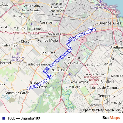 See why over 2 million users trust and consider busmaps.com as the best public transport website. busmaps gives you San Justo Buses suggested routes, real-time bus tracker, line route maps in San Justo, and helps to find the closest 180b bus stops near you. No internet available? Download an offline PDF map and bus schedule for the 180b bus to take on your trip.