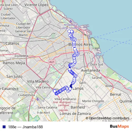 See why over 2 million users trust and consider busmaps.com as the best public transport website. busmaps gives you Buenos Aires Buses suggested routes, real-time bus tracker, line route maps in Buenos Aires, and helps to find the closest 188e bus stops near you. No internet available? Download an offline PDF map and bus schedule for the 188e bus to take on your trip.