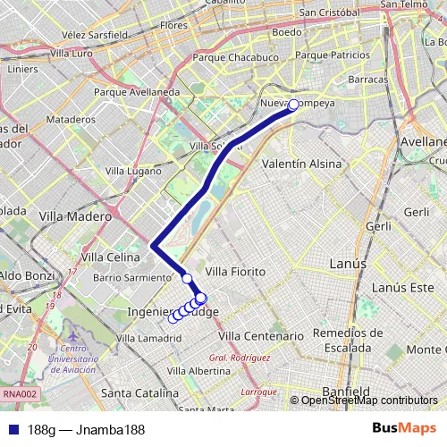 See why over 2 million users trust and consider busmaps.com as the best public transport website. busmaps gives you Lanus Buses suggested routes, real-time bus tracker, line route maps in Lanus, and helps to find the closest 188g bus stops near you. No internet available? Download an offline PDF map and bus schedule for the 188g bus to take on your trip.