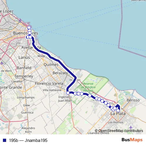 See why over 2 million users trust and consider busmaps.com as the best public transport website. busmaps gives you La Plata Buses suggested routes, real-time bus tracker, line route maps in La Plata, and helps to find the closest 195b bus stops near you. No internet available? Download an offline PDF map and bus schedule for the 195b bus to take on your trip.
