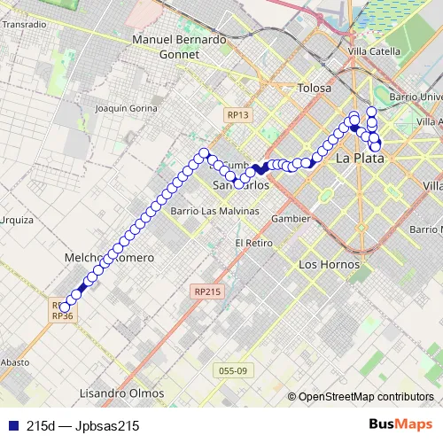See why over 2 million users trust and consider busmaps.com as the best public transport website. busmaps gives you La Plata Buses suggested routes, real-time bus tracker, line route maps in La Plata, and helps to find the closest 215d bus stops near you. No internet available? Download an offline PDF map and bus schedule for the 215d bus to take on your trip.