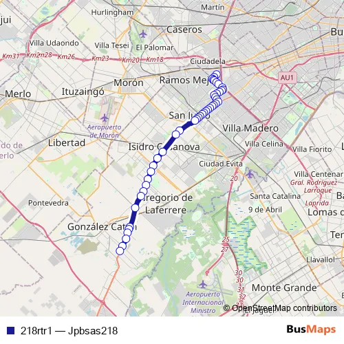 See why over 2 million users trust and consider busmaps.com as the best public transport website. busmaps gives you San Justo Buses suggested routes, real-time bus tracker, line route maps in San Justo, and helps to find the closest 218rtr1 bus stops near you. No internet available? Download an offline PDF map and bus schedule for the 218rtr1 bus to take on your trip.