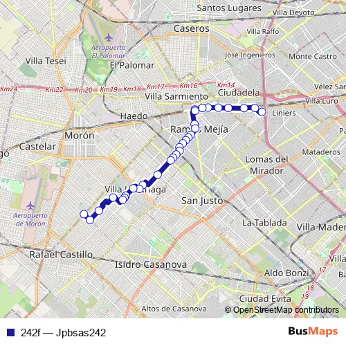 See why over 2 million users trust and consider busmaps.com as the best public transport website. busmaps gives you San Justo Buses suggested routes, real-time bus tracker, line route maps in San Justo, and helps to find the closest 242f bus stops near you. No internet available? Download an offline PDF map and bus schedule for the 242f bus to take on your trip.
