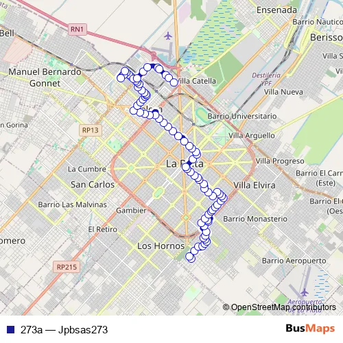 See why over 2 million users trust and consider busmaps.com as the best public transport website. busmaps gives you La Plata Buses suggested routes, real-time bus tracker, line route maps in La Plata, and helps to find the closest 273a bus stops near you. No internet available? Download an offline PDF map and bus schedule for the 273a bus to take on your trip.