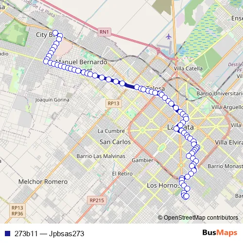 See why over 2 million users trust and consider busmaps.com as the best public transport website. busmaps gives you La Plata Buses suggested routes, real-time bus tracker, line route maps in La Plata, and helps to find the closest 273b11 bus stops near you. No internet available? Download an offline PDF map and bus schedule for the 273b11 bus to take on your trip.