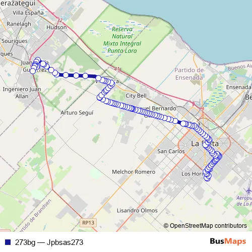 See why over 2 million users trust and consider busmaps.com as the best public transport website. busmaps gives you La Plata Buses suggested routes, real-time bus tracker, line route maps in La Plata, and helps to find the closest 273bg bus stops near you. No internet available? Download an offline PDF map and bus schedule for the 273bg bus to take on your trip.