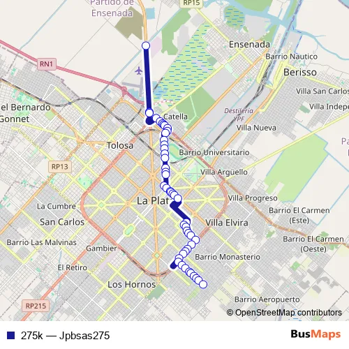 See why over 2 million users trust and consider busmaps.com as the best public transport website. busmaps gives you La Plata Buses suggested routes, real-time bus tracker, line route maps in La Plata, and helps to find the closest 275k bus stops near you. No internet available? Download an offline PDF map and bus schedule for the 275k bus to take on your trip.