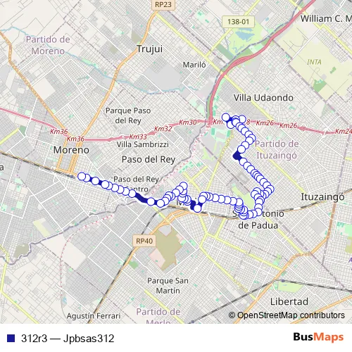 See why over 2 million users trust and consider busmaps.com as the best public transport website. busmaps gives you Merlo Buses suggested routes, real-time bus tracker, line route maps in Merlo, and helps to find the closest 312r3 bus stops near you. No internet available? Download an offline PDF map and bus schedule for the 312r3 bus to take on your trip.