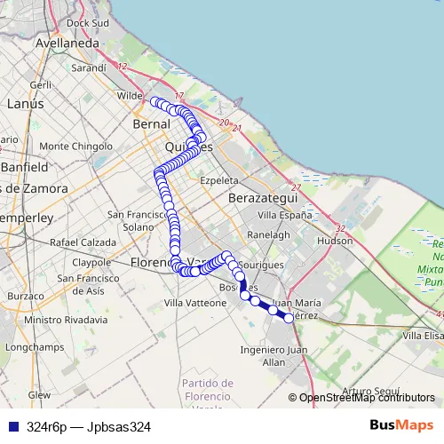 See why over 2 million users trust and consider busmaps.com as the best public transport website. busmaps gives you Quilmes Buses suggested routes, real-time bus tracker, line route maps in Quilmes, and helps to find the closest 324r6p bus stops near you. No internet available? Download an offline PDF map and bus schedule for the 324r6p bus to take on your trip.