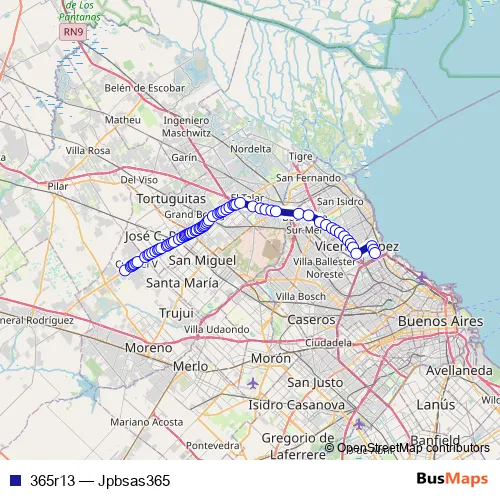 See why over 2 million users trust and consider busmaps.com as the best public transport website. busmaps gives you Jose C. Paz Buses suggested routes, real-time bus tracker, line route maps in Jose C. Paz, and helps to find the closest 365r13 bus stops near you. No internet available? Download an offline PDF map and bus schedule for the 365r13 bus to take on your trip.