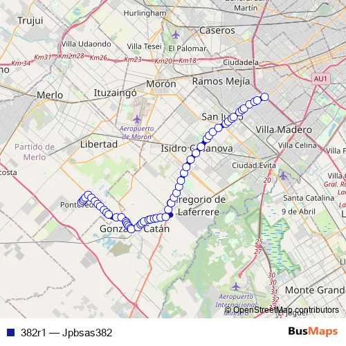 See why over 2 million users trust and consider busmaps.com as the best public transport website. busmaps gives you San Justo Buses suggested routes, real-time bus tracker, line route maps in San Justo, and helps to find the closest 382r1 bus stops near you. No internet available? Download an offline PDF map and bus schedule for the 382r1 bus to take on your trip.