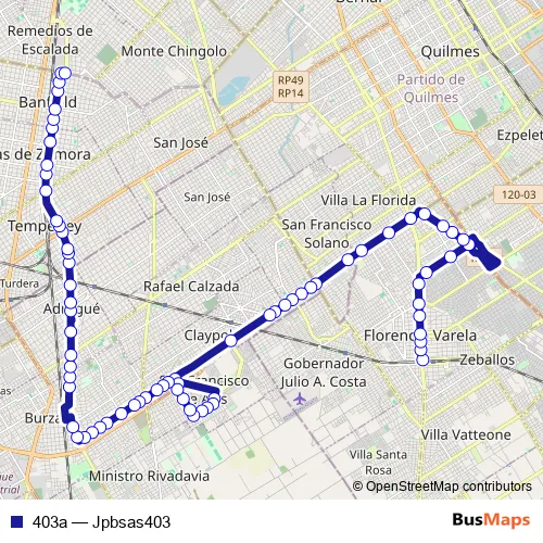 See why over 2 million users trust and consider busmaps.com as the best public transport website. busmaps gives you Lomas de Zamora Buses suggested routes, real-time bus tracker, line route maps in Lomas de Zamora, and helps to find the closest 403a bus stops near you. No internet available? Download an offline PDF map and bus schedule for the 403a bus to take on your trip.