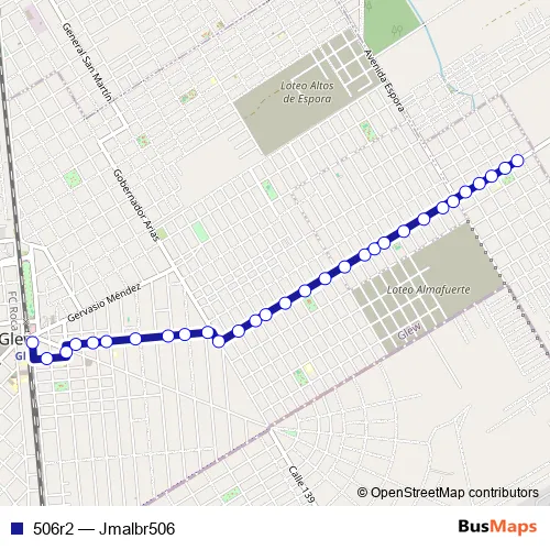 The first stop of the 506r2 bus route is Vicente López Y Planes 99-299 and the last stop is Gral. Brig. Manuel Calderón 402-500. 506r2 (Jmalbr506) is operational during todos los días.