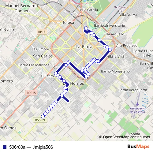 See why over 2 million users trust and consider busmaps.com as the best public transport website. busmaps gives you La Plata Buses suggested routes, real-time bus tracker, line route maps in La Plata, and helps to find the closest 506r80a bus stops near you. No internet available? Download an offline PDF map and bus schedule for the 506r80a bus to take on your trip.