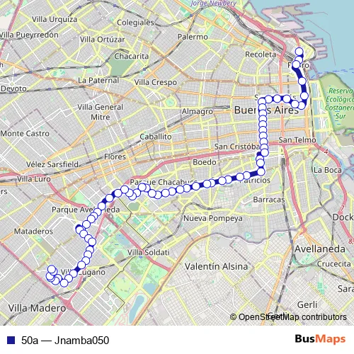 See why over 2 million users trust and consider busmaps.com as the best public transport website. busmaps gives you Buenos Aires Buses suggested routes, real-time bus tracker, line route maps in Buenos Aires, and helps to find the closest 50a bus stops near you. No internet available? Download an offline PDF map and bus schedule for the 50a bus to take on your trip.