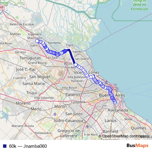 See why over 2 million users trust and consider busmaps.com as the best public transport website. busmaps gives you Buenos Aires Buses suggested routes, real-time bus tracker, line route maps in Buenos Aires, and helps to find the closest 60k bus stops near you. No internet available? Download an offline PDF map and bus schedule for the 60k bus to take on your trip.