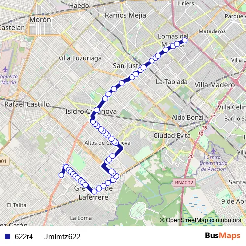 See why over 2 million users trust and consider busmaps.com as the best public transport website. busmaps gives you San Justo Buses suggested routes, real-time bus tracker, line route maps in San Justo, and helps to find the closest 622r4 bus stops near you. No internet available? Download an offline PDF map and bus schedule for the 622r4 bus to take on your trip.