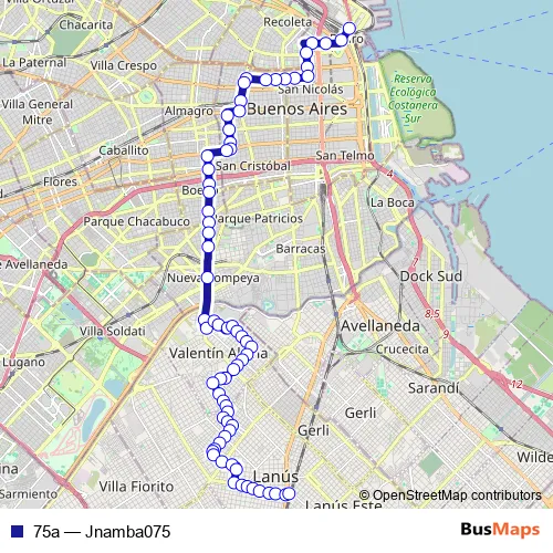 See why over 2 million users trust and consider busmaps.com as the best public transport website. busmaps gives you Buenos Aires Buses suggested routes, real-time bus tracker, line route maps in Buenos Aires, and helps to find the closest 75a bus stops near you. No internet available? Download an offline PDF map and bus schedule for the 75a bus to take on your trip.