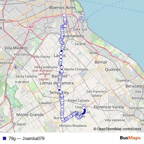 See why over 2 million users trust and consider busmaps.com as the best public transport website. busmaps gives you Lomas de Zamora Buses suggested routes, real-time bus tracker, line route maps in Lomas de Zamora, and helps to find the closest 79g bus stops near you. No internet available? Download an offline PDF map and bus schedule for the 79g bus to take on your trip.