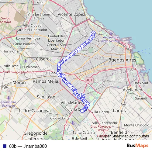 See why over 2 million users trust and consider busmaps.com as the best public transport website. busmaps gives you Buenos Aires Buses suggested routes, real-time bus tracker, line route maps in Buenos Aires, and helps to find the closest 80b bus stops near you. No internet available? Download an offline PDF map and bus schedule for the 80b bus to take on your trip.