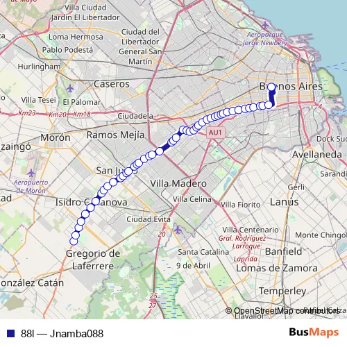 See why over 2 million users trust and consider busmaps.com as the best public transport website. busmaps gives you Buenos Aires Buses suggested routes, real-time bus tracker, line route maps in Buenos Aires, and helps to find the closest 88l bus stops near you. No internet available? Download an offline PDF map and bus schedule for the 88l bus to take on your trip.