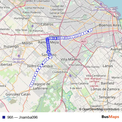 See why over 2 million users trust and consider busmaps.com as the best public transport website. busmaps gives you San Justo Buses suggested routes, real-time bus tracker, line route maps in San Justo, and helps to find the closest 96ñ bus stops near you. No internet available? Download an offline PDF map and bus schedule for the 96ñ bus to take on your trip.