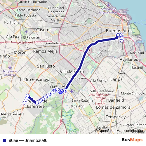 See why over 2 million users trust and consider busmaps.com as the best public transport website. busmaps gives you San Justo Buses suggested routes, real-time bus tracker, line route maps in San Justo, and helps to find the closest 96ae bus stops near you. No internet available? Download an offline PDF map and bus schedule for the 96ae bus to take on your trip.