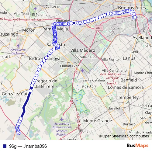 See why over 2 million users trust and consider busmaps.com as the best public transport website. busmaps gives you San Justo Buses suggested routes, real-time bus tracker, line route maps in San Justo, and helps to find the closest 96g bus stops near you. No internet available? Download an offline PDF map and bus schedule for the 96g bus to take on your trip.