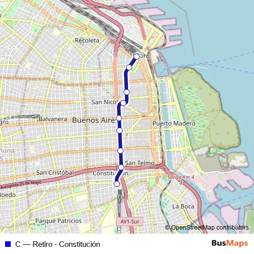 See why over 2 million users trust and consider busmaps.com as the best public transport website. busmaps gives you Buenos Aires Metro Lines suggested routes, real-time bus tracker, line route maps in Buenos Aires, and helps to find the closest C metro stops near you. No internet available? Download an offline PDF map and bus schedule for the C metro to take on your trip.