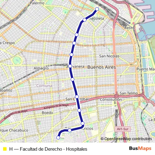Metro H - Facultad de Derecho - Hospitales in Buenos Aires: Stops & Timetable