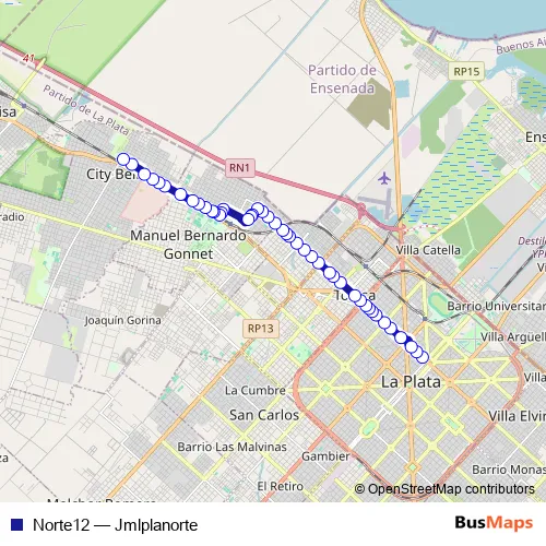 See why over 2 million users trust and consider busmaps.com as the best public transport website. busmaps gives you La Plata Buses suggested routes, real-time bus tracker, line route maps in La Plata, and helps to find the closest Norte12 bus stops near you. No internet available? Download an offline PDF map and bus schedule for the Norte12 bus to take on your trip.