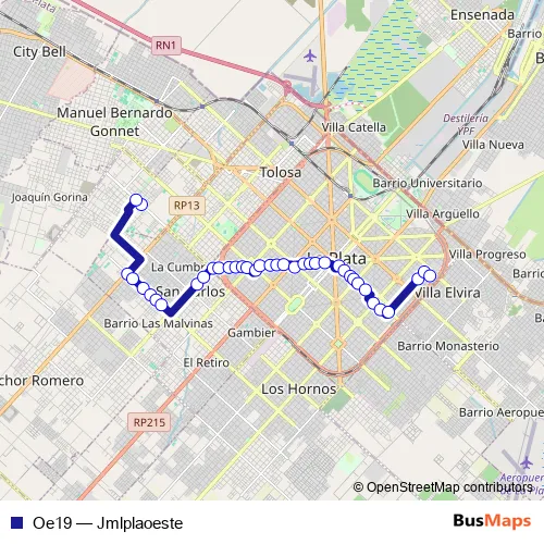 See why over 2 million users trust and consider busmaps.com as the best public transport website. busmaps gives you La Plata Buses suggested routes, real-time bus tracker, line route maps in La Plata, and helps to find the closest Oe19 bus stops near you. No internet available? Download an offline PDF map and bus schedule for the Oe19 bus to take on your trip.