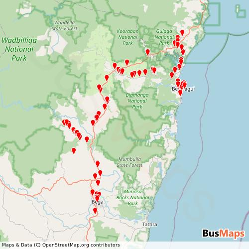 Bega Valley Coaches operates in the following cities: Bermagui, Brogo, Quaama, Wallaga Lake.