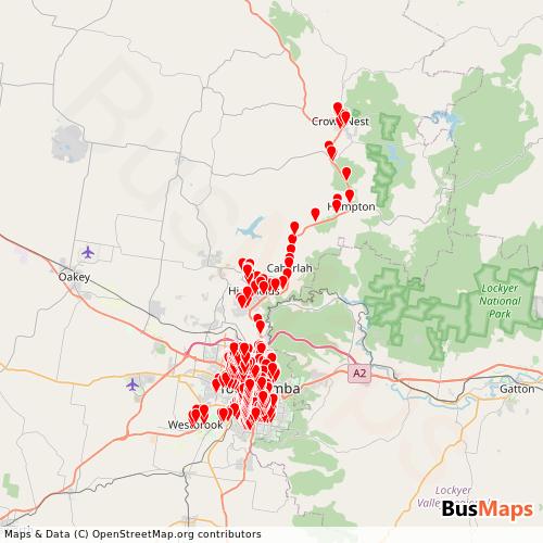Bus Qld Toowoomba operates in the following cities: Toowoomba, Kleinton.