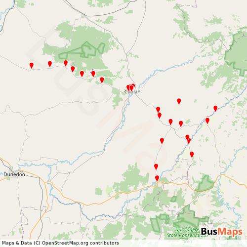 Grace Coaches operates in the following cities: Cassilis, Coolah, Uarbry.