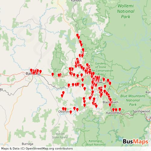 Transit Data for Australia by Lithgow Buslines with Stops on Map