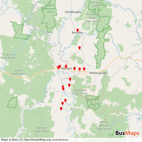 Simes Bros. Coaches operates in the following cities: Bulldog, Tabulam.