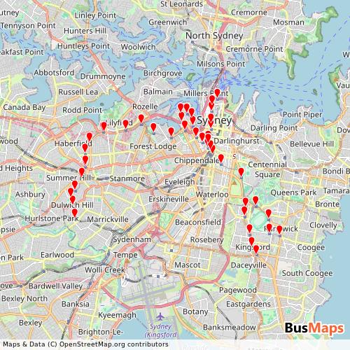 Sydney Light Rail coverage area map