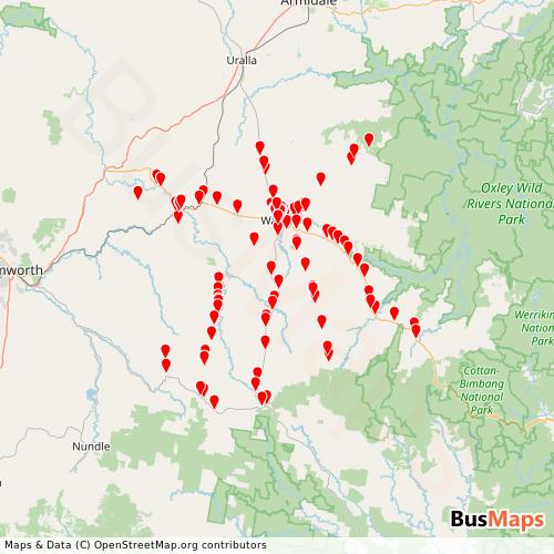 The Oxley Explorer operates in the following cities: Walcha, Woolbrook, Niangala, Weabonga.